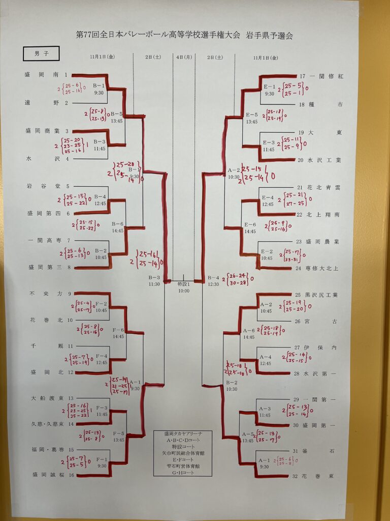 決勝 盛岡南高校戦 1st:25ー20 , 2nd:17ー25 ,3rd25ー23 , 4th25―18